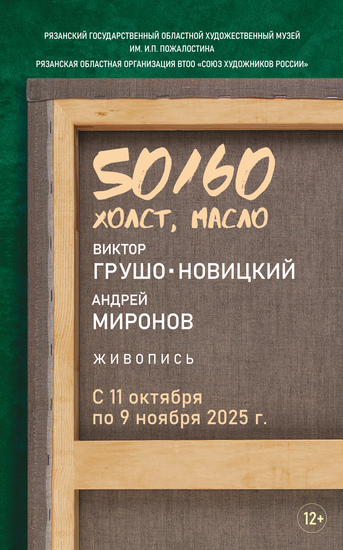 11 октября 2025 года в 16.00 в Выставочном зале Рязанского государственного областного художественного музея им. И.П. Пожалостина (Рязань, ул. Есенина, 112) состоялось открытие совместной выставки Председателя Рязанской областной организации ВТОО «Союз художников России» Виктора Грушо-Новицкого и члена Союза художников России, Творческого союза художников России Андрея Миронова «50/60. Холст, масло».