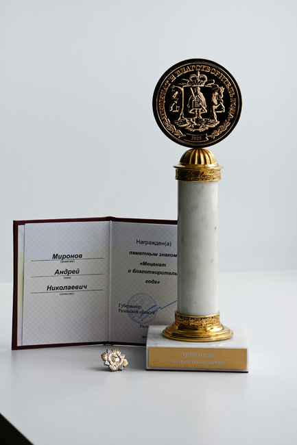 Награда Рязанской области памятный знак «Меценат и благотворитель года». Вручён 29 декабря 2025 года Губернатором Рязанской области в здании областного Правительства. Подробней: http://artmiro.ru/blog/blagotvoritel/2025-12-29-523