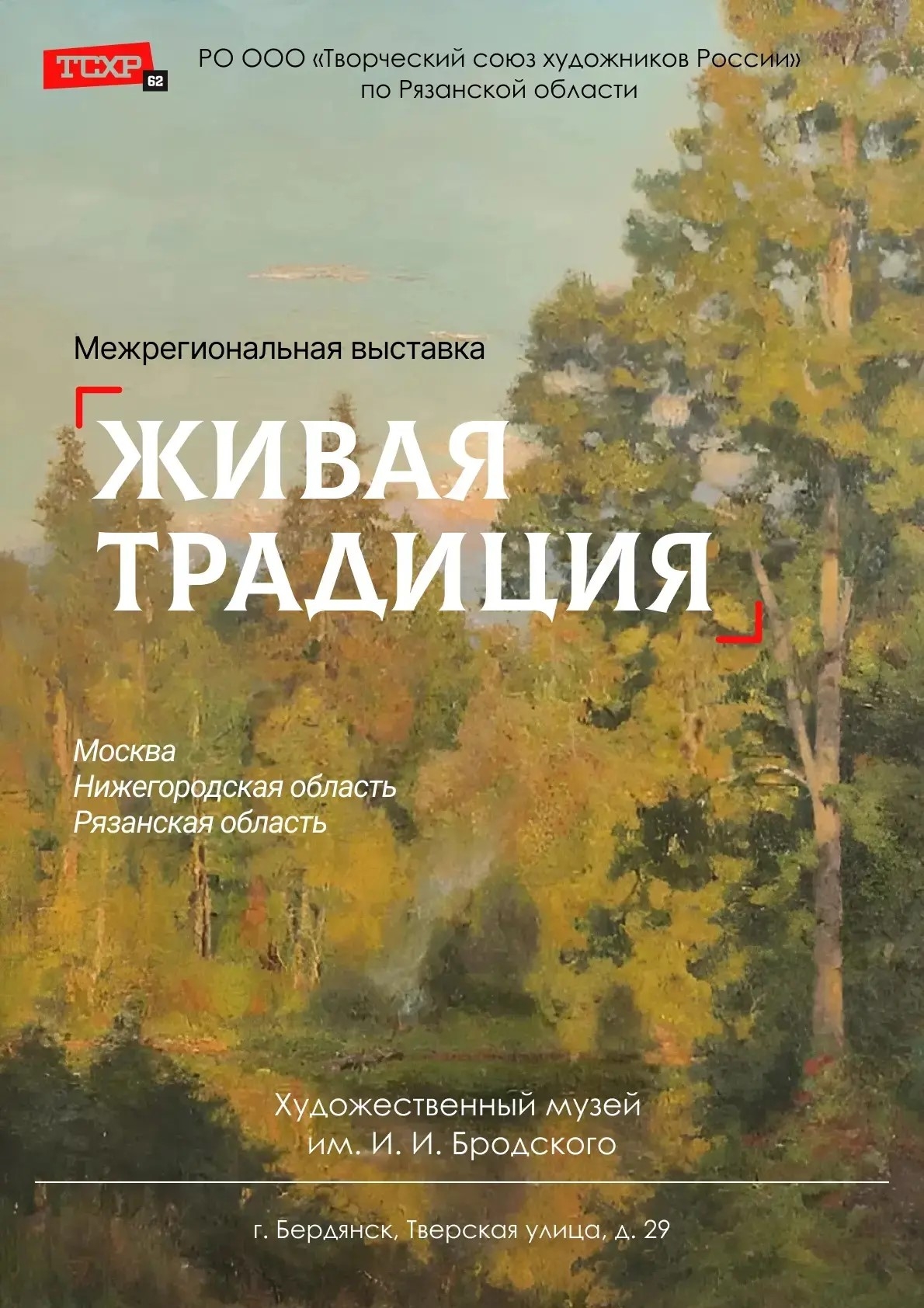 18 апреля 2026 года в Бердянском художественном музее им. И.И. Бродского (Запорожская обл., г. Бердянск, ул. Тверская, д. 29) открылась выставка живописи Рязанского регионального отделения ООО «Творческий союз художников России» «Живая традиция: мастера Рязанской земли», организованная по инициативе председателя регионального отделения Владимира Кривова.
